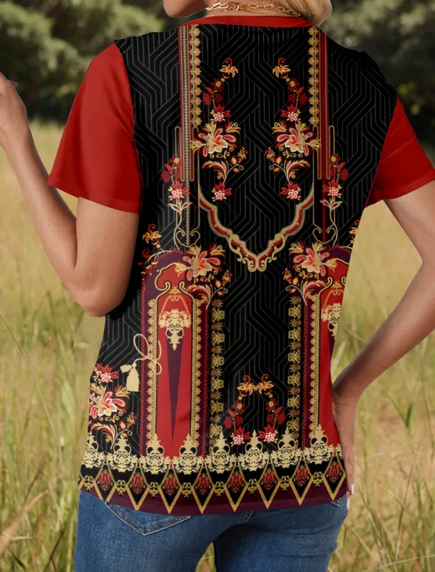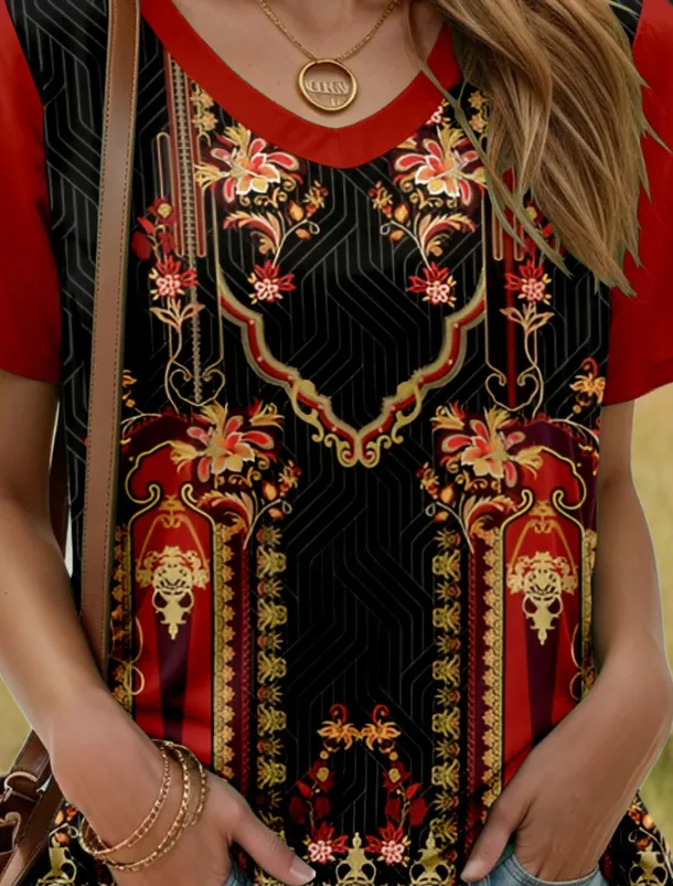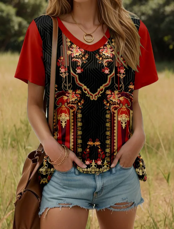 – Flattering V-neck neckline
