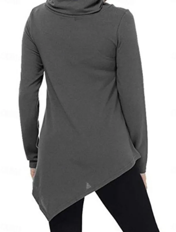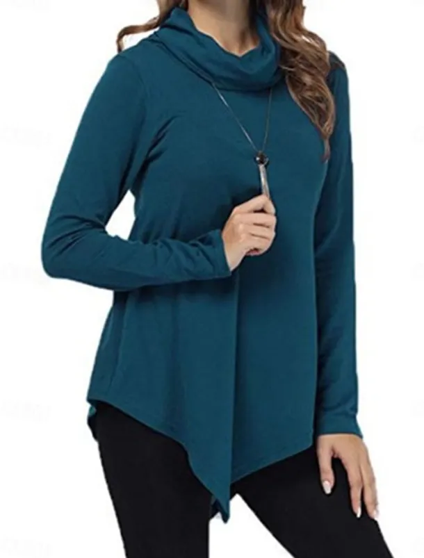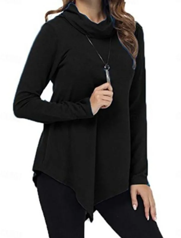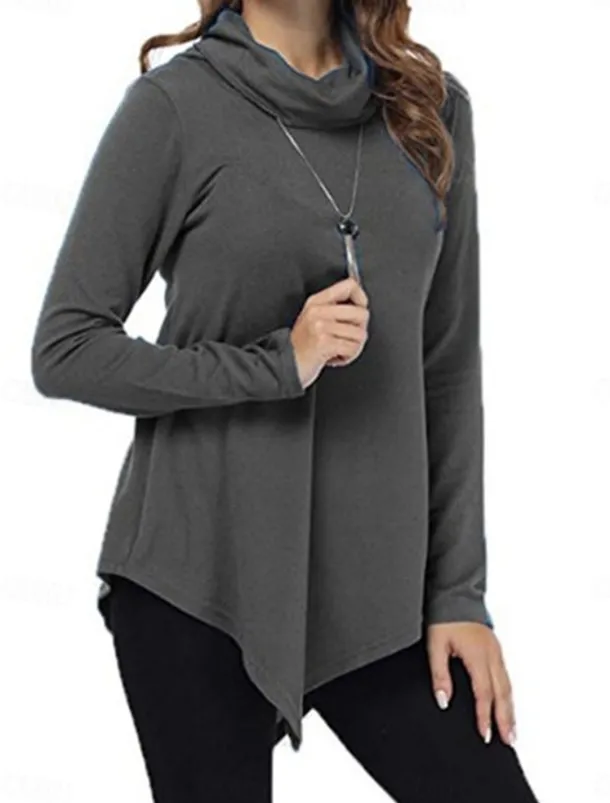 Women’s T Shirt Plain Fashion Modern Casual Long Sleeve Pile Neck Regular Tops Daily Weekend Black Dark Green Gray Fall Winter