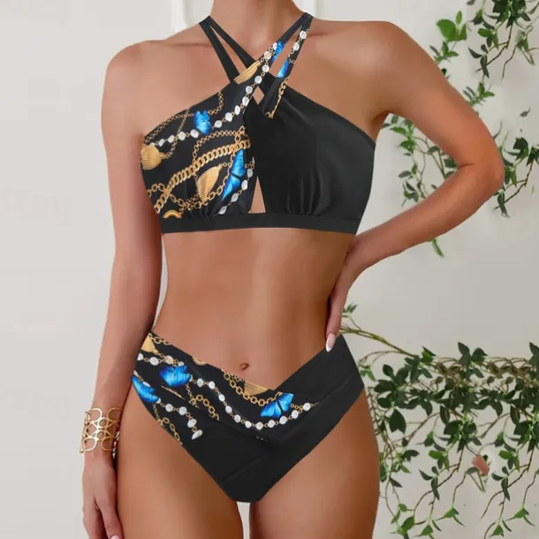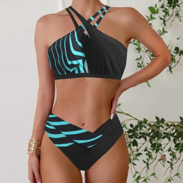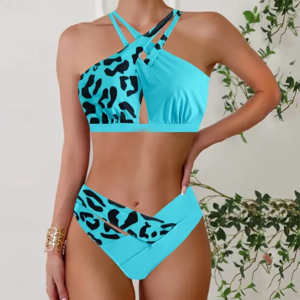Women’s Tankini Two Piece Swimsuit Backless Halter Swimwear Leopard Print Swimwear Black Blue Breathable Quick Dry Lightweight Sleeveless – Swimming Surfing Beach Summer Spring