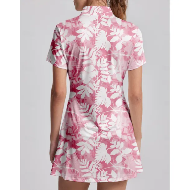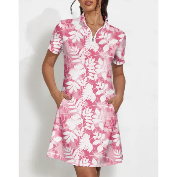 Women’s Tennis Dress Golf Dress Pink Short Sleeve Dress Floral Ladies Golf Attire Clothes Outfits Wear Apparel
