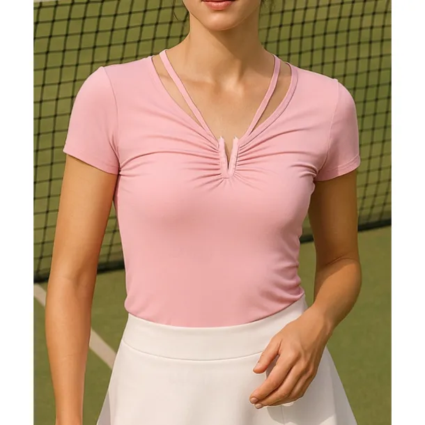 Women’s Tennis Top Tennis T Shirt Short Sleeves Ruched Breathable Moisture Wicking Sweat-Wicking Yoga Tennis Golf Solid Colored Black Pink Blue Tennis Clothing