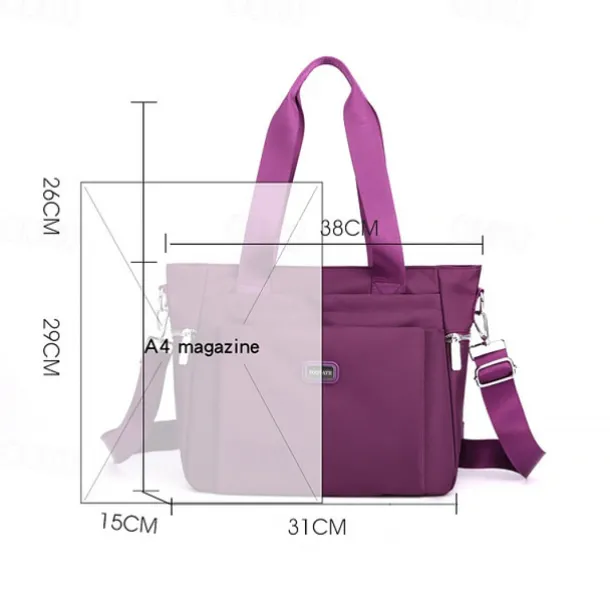 Women’s Waterproof Nylon Shoulder Bag – Large Capacity Tote with Detachable Strap for Travel, Work, and Daily Use