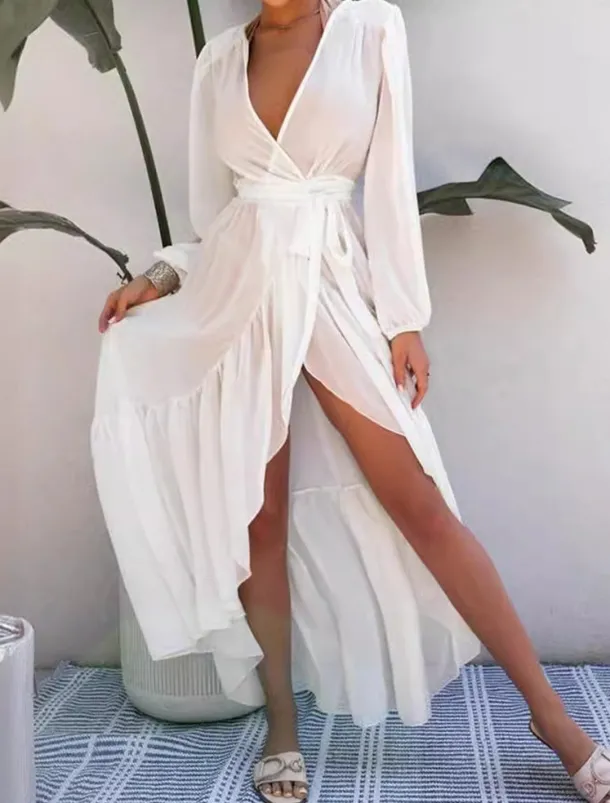 – Achieve a flattering silhouette with the ruffle hem and split design of this maxi swing dress