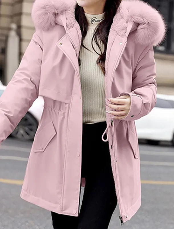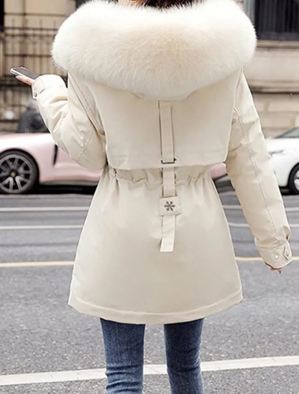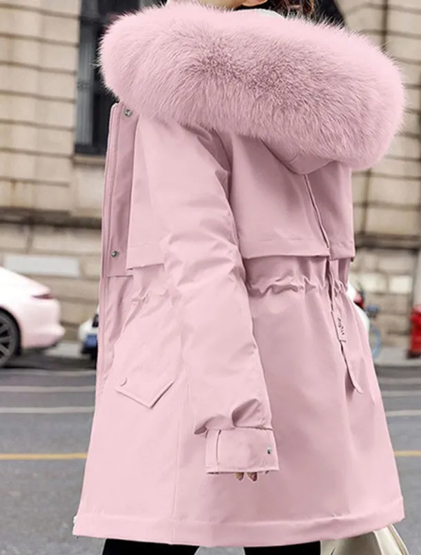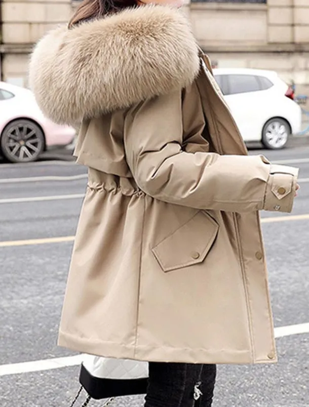 2. Removable Fur: Thicken cotton Coat featuring detachable zip-off faux fur trim for easy customization.