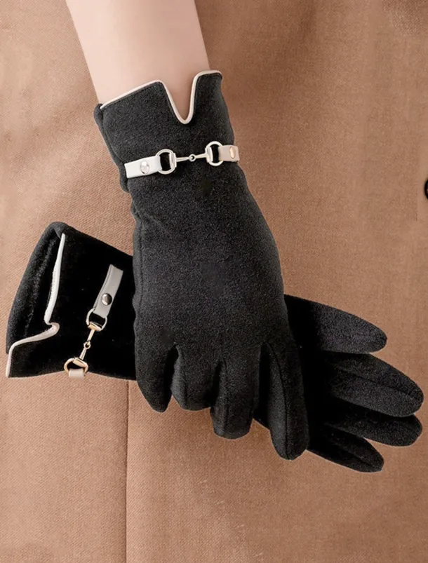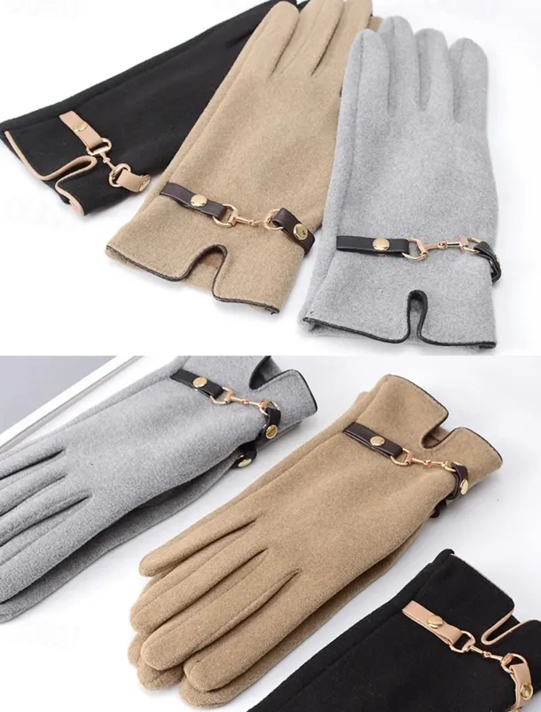 Women’s Winter Gloves with Elegant Metal Accent – Warm and Stylish Wool-Blend Design for Cold Weather