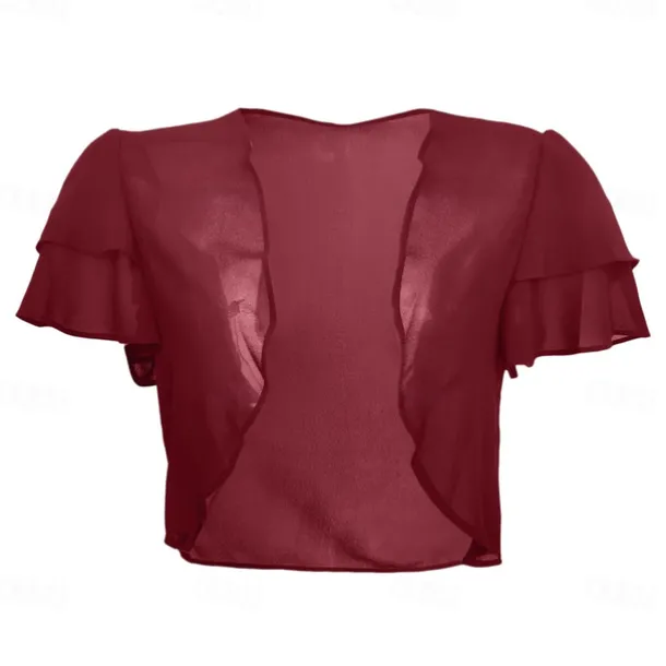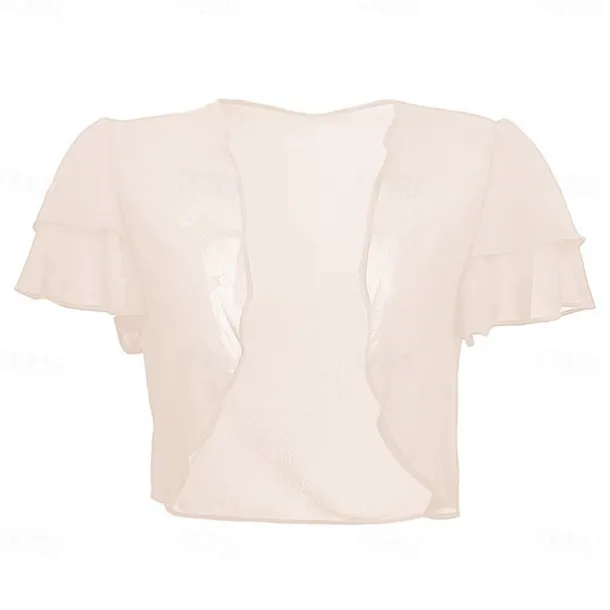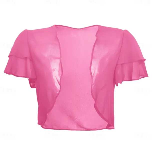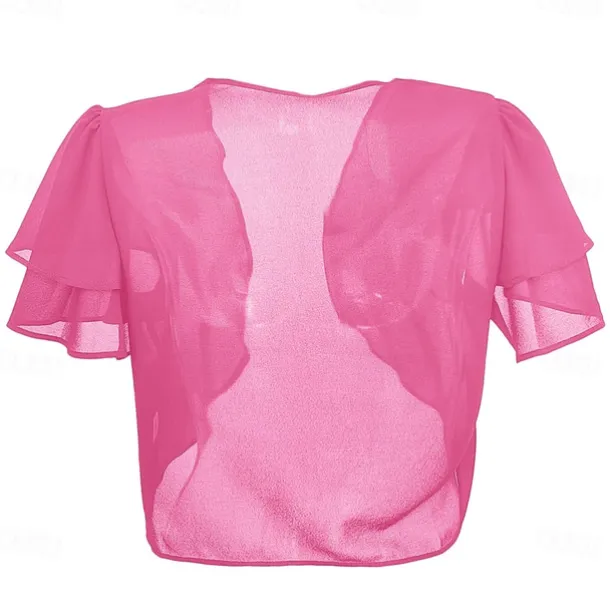 Women’s Wrap Elegant Sun Protection Short Sleeve Chiffon Wedding Wraps With Pure Color For Wedding Summer