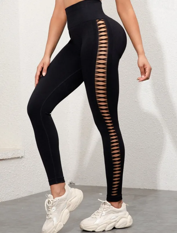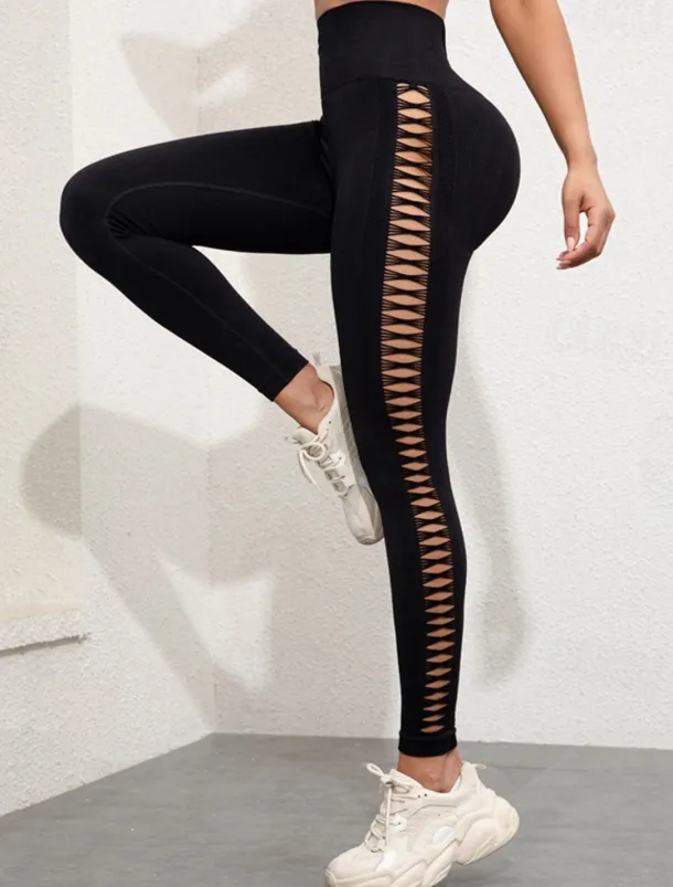 Women’s Yoga Pants Yoga Leggings Cut Out High Waist Yoga Gym Workout Pilates Tights Black Spandex Fall Sports Activewear Stretchy Slim