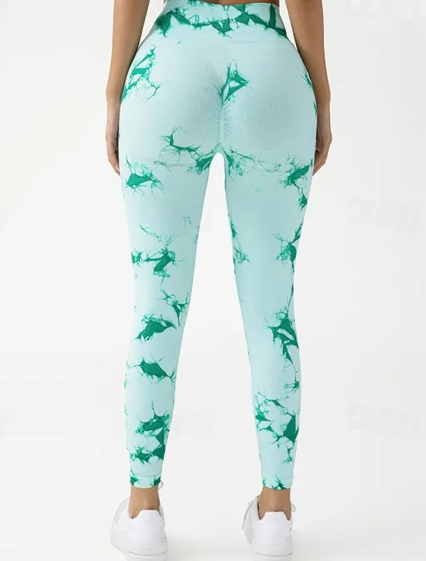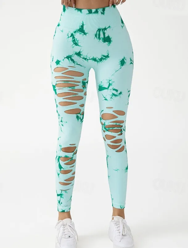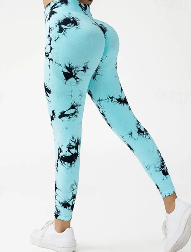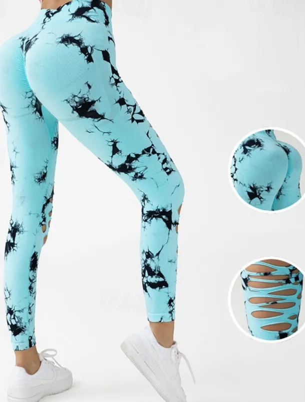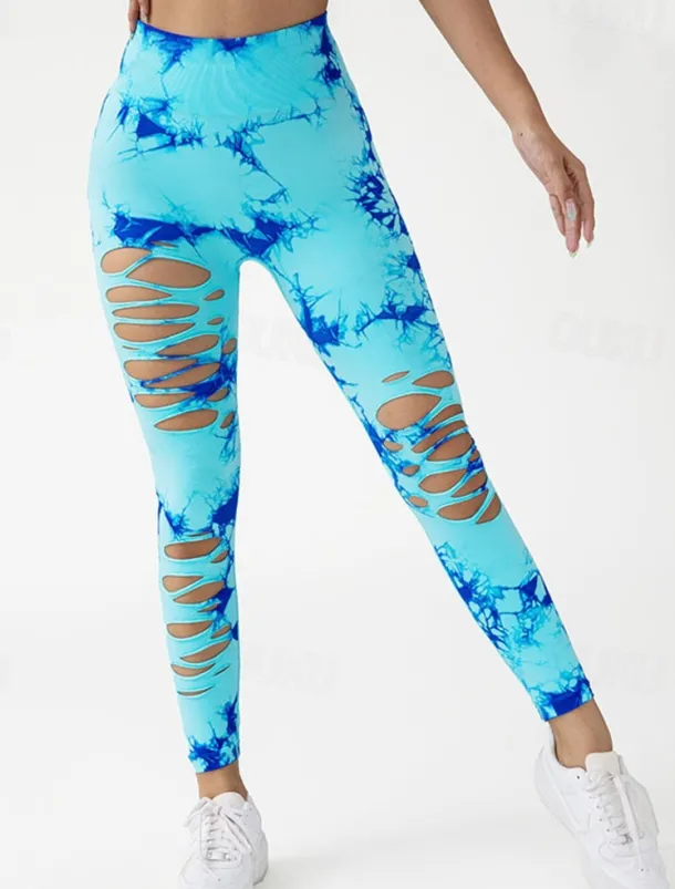 Women’s Yoga Pants Yoga Leggings Cut Out High Waist Yoga Gym Workout Pilates Tights Tie Dye Blue Sky Blue Purple Fall Sports Activewear Stretchy Slim
