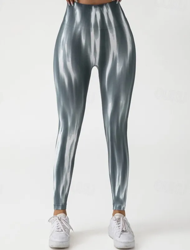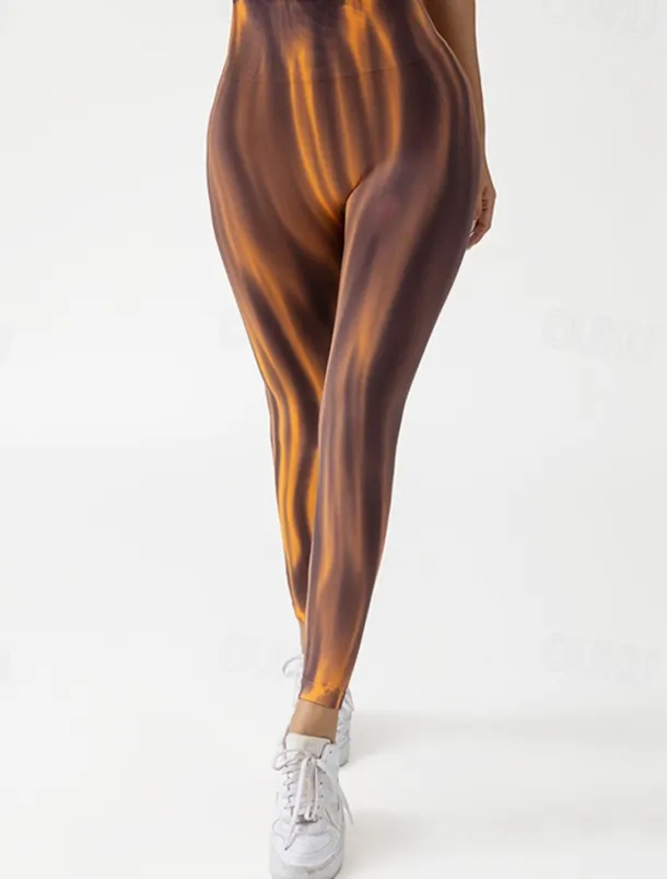 Women’s Yoga Pants Yoga Leggings Elastic Waistband High Waist Yoga Gym Workout Pilates Tights Tie Dye Orange Green Grey Fall Sports Activewear Stretchy Slim