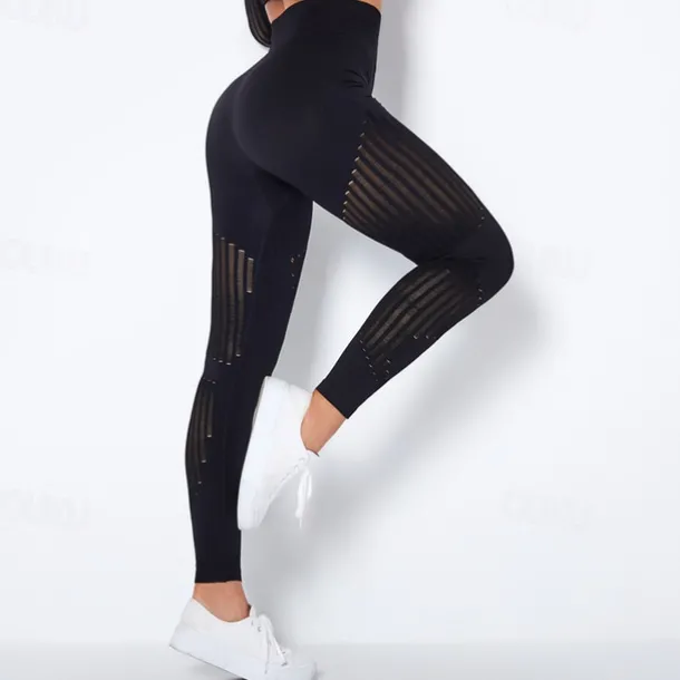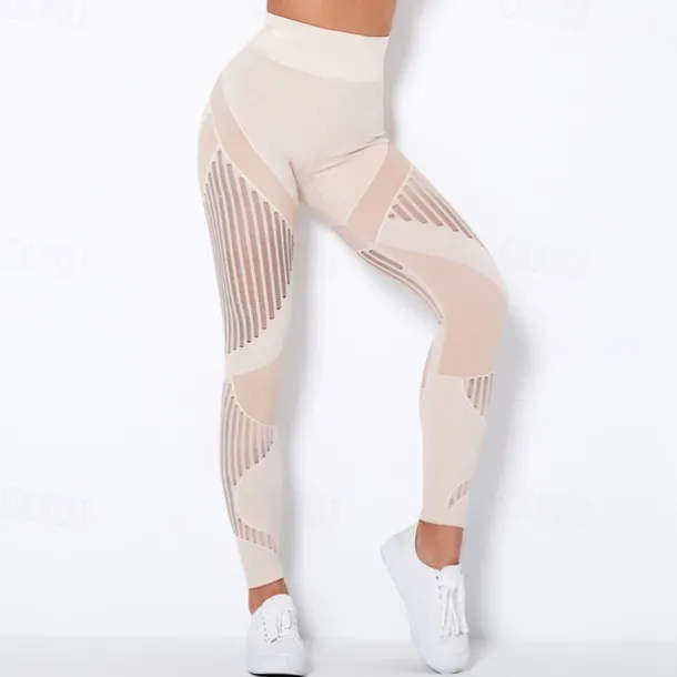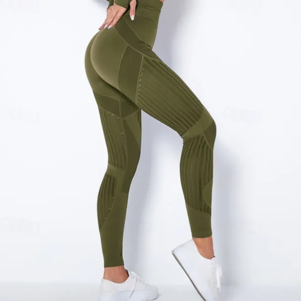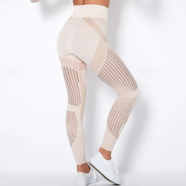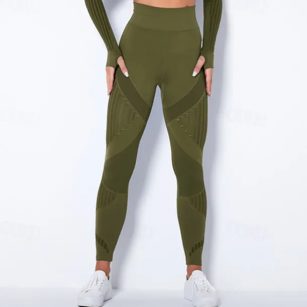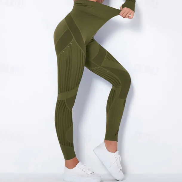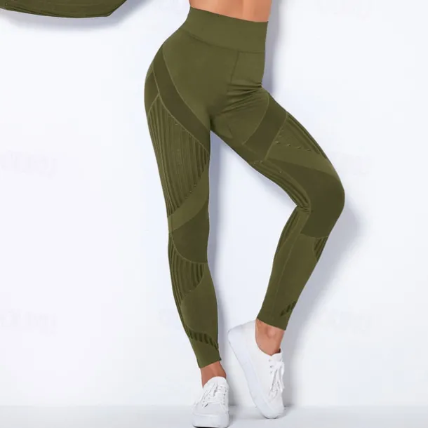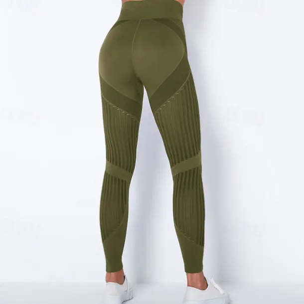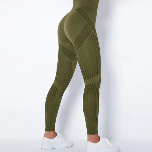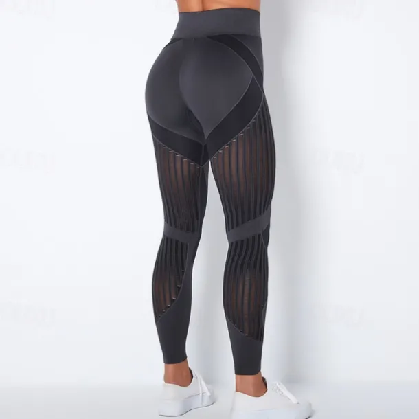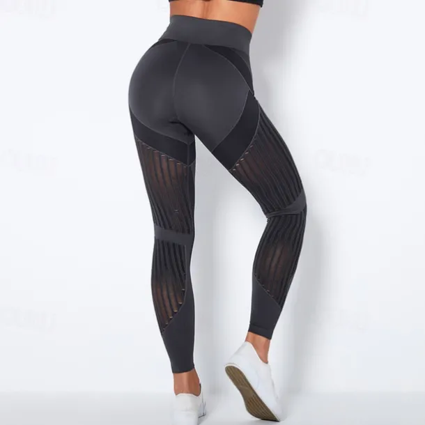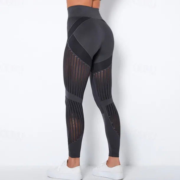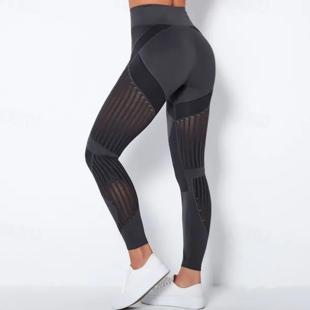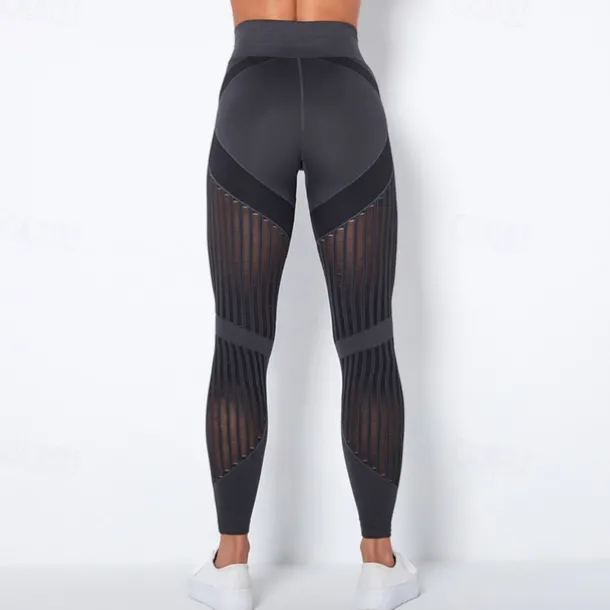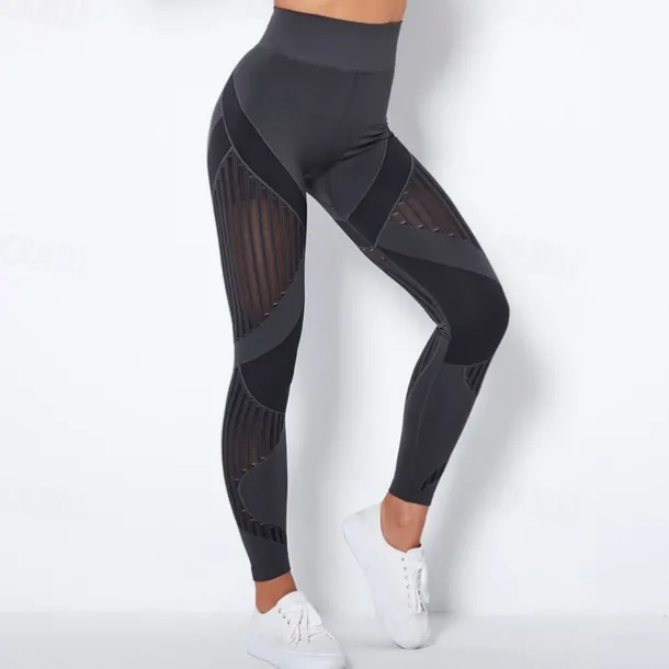 Women’s Yoga Pants Yoga Leggings Mesh Patchwork High Waist Yoga Gym Workout Pilates Tights Color Block Dark Grey Black Army Green Spandex Sports Activewear Stretchy Slim