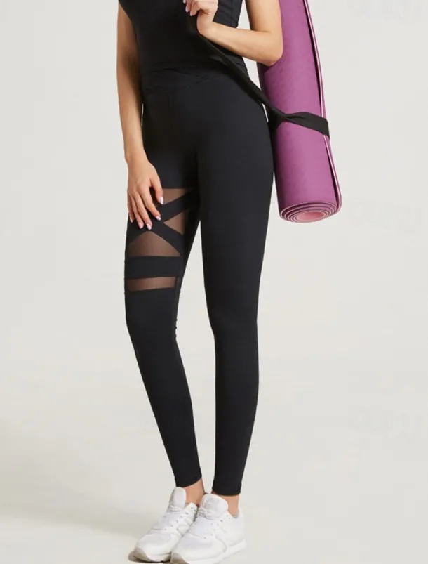 Women’s Yoga Pants Yoga Leggings Patchwork Basic Tummy Control Butt Lift High Waist Yoga Gym Workout Pilates Cropped Leggings Tights Fashion Black Fall Winter Sports Activewear Stretchy Slim