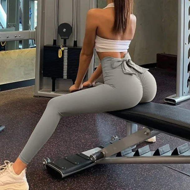 Women’s Yoga Pants Yoga Leggings Tie Knot Elastic Waistband High Waist Yoga Gym Workout Pilates Tights Yellow Pink Navy Blue Sports Activewear Stretchy Slim