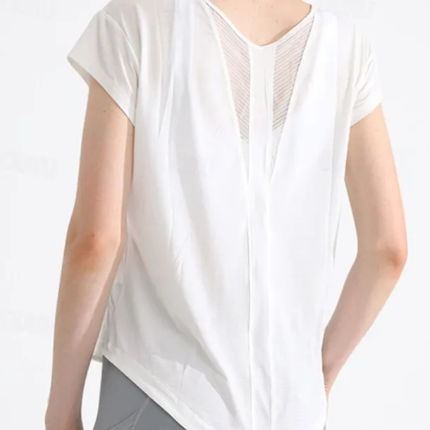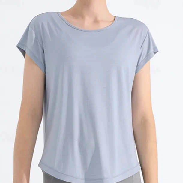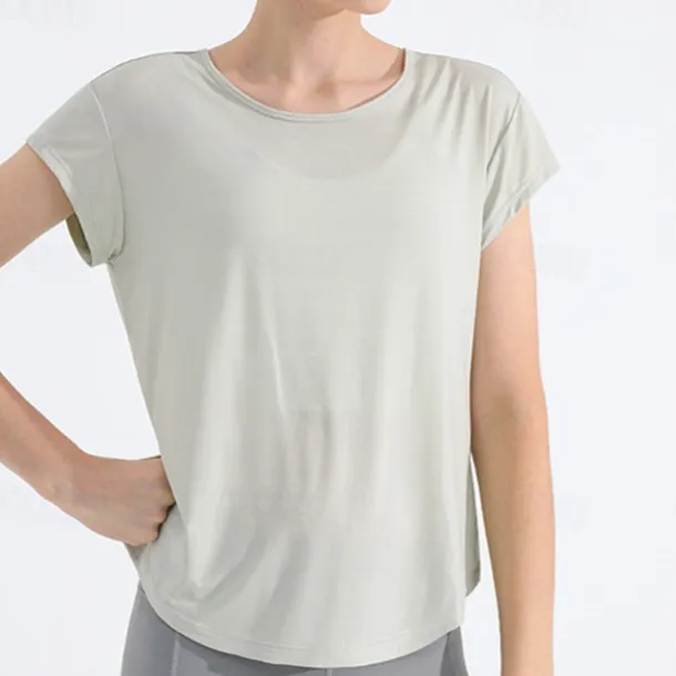 Women’s Yoga Top Crew Neck Quick Dry Lightweight Breathable Mesh Short Sleeve Sports Solid Color Tee Tshirt Top For Running Fitness Yoga Loose Fit Activewear