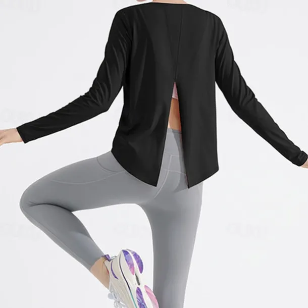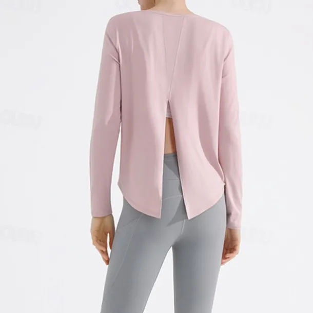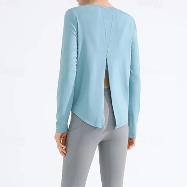 Women’s Yoga Top Crew Neck Quick Dry Lightweight Breathable Split Long Sleeve Sports Solid Color Tee Tshirt Top For Running Fitness Yoga Loose Fit Activewear