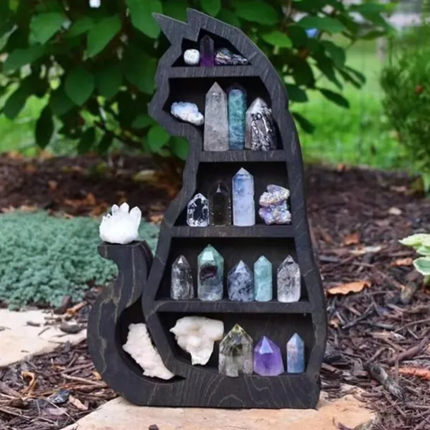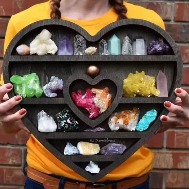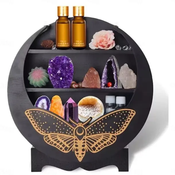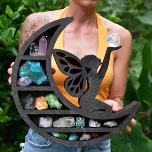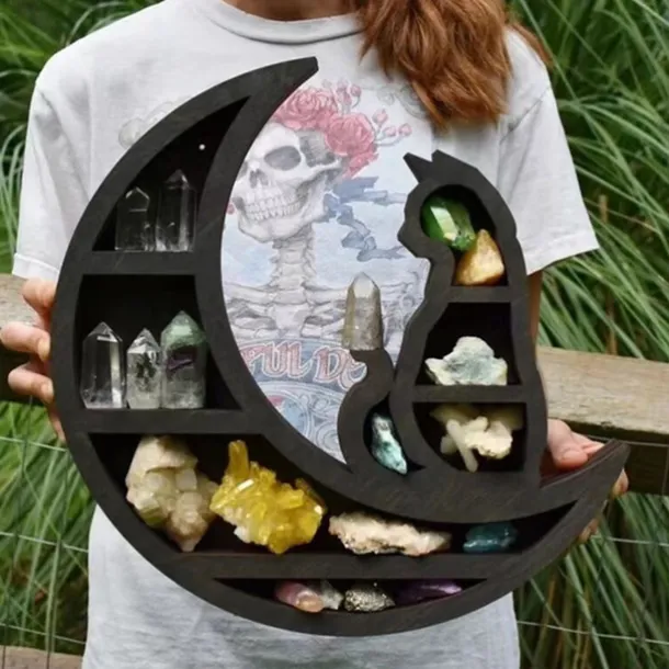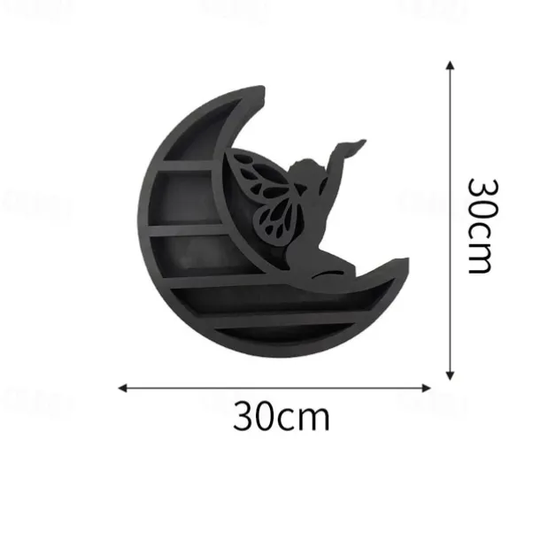 Wooden Moon Shelf, Durable Pine Floating Shelves Engraved Moon Design Shelf for Crystal Essential Oil Display Home Decor-Heart