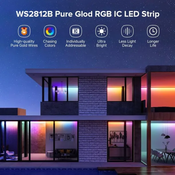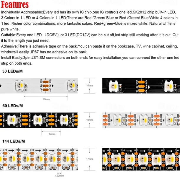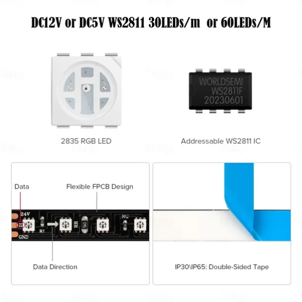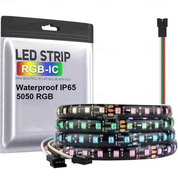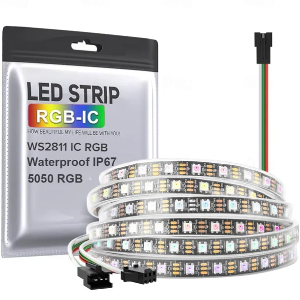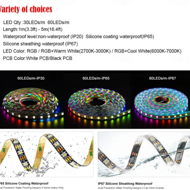 WS2812 RGBIC Addressable LED Strip Light Dream Color Strip Light 8.2FT/16.4FT 20Pixels/m Waterproof Black and White PCB Flexible DC12V Chase Effect Suitable for Indoor and Outdoor Activity Atmosphere Decoration