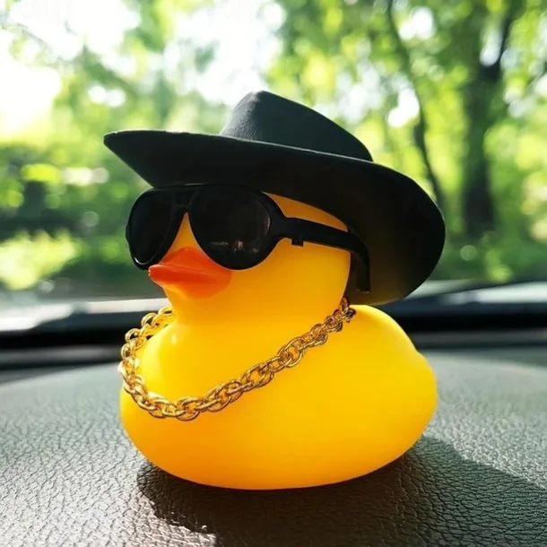 Yellow Duck Dashboard Ornament – Car Styling Accessories with Cowboy Hat, Sunglasses, and Necklace – Unique Auto Internal Decoration