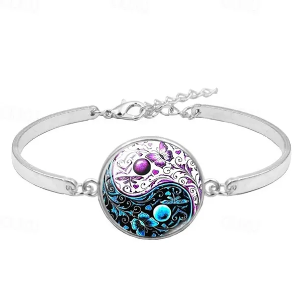 Yin Yang Tai Chi Butterfly Time Gem Necklace Set Cross border European and American Creative Silver Bracelet Earrings Jewelry Set