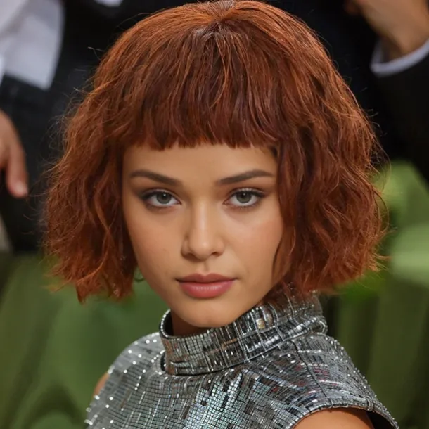 Zendaya Inspired Wigs Synthetic Wig Curly With Bangs Wig Short Medium Brown / Dark Auburn Synthetic Hair Women’s Fashionable Design Soft Natural Brown